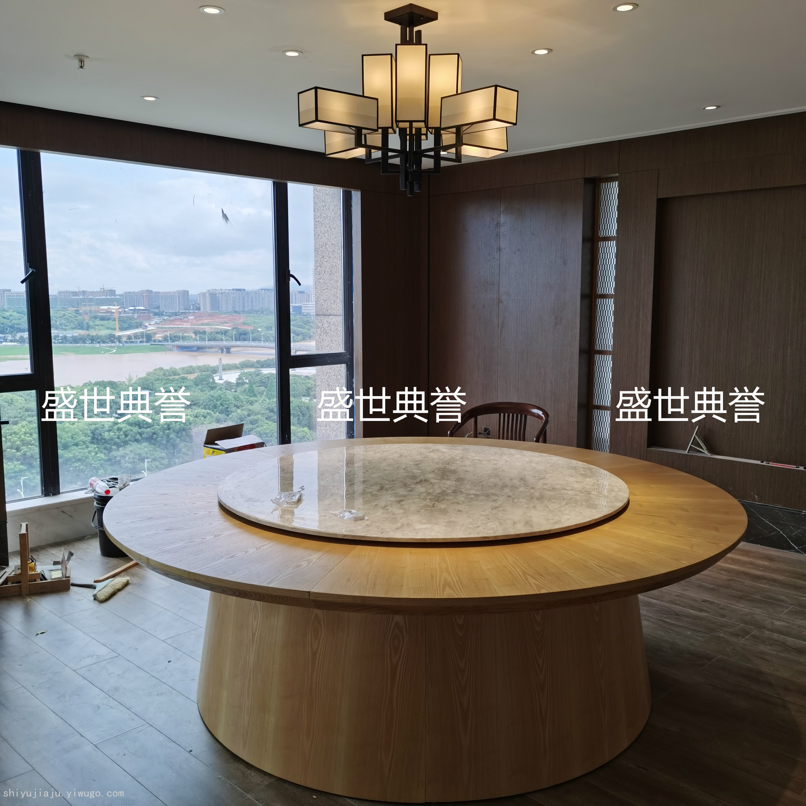 北京国际酒店包厢实木电动餐桌海鲜餐馆轻奢大理石电动转盘餐桌椅