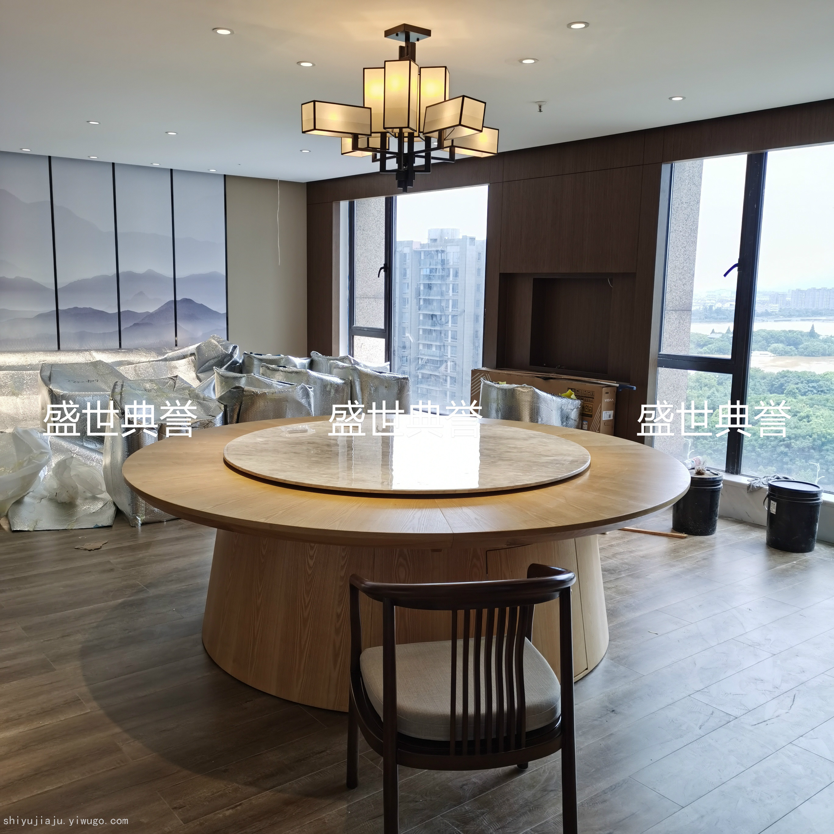 苏州星级酒店新中式实木电动餐桌饭店豪华包厢大理石电动转盘餐桌