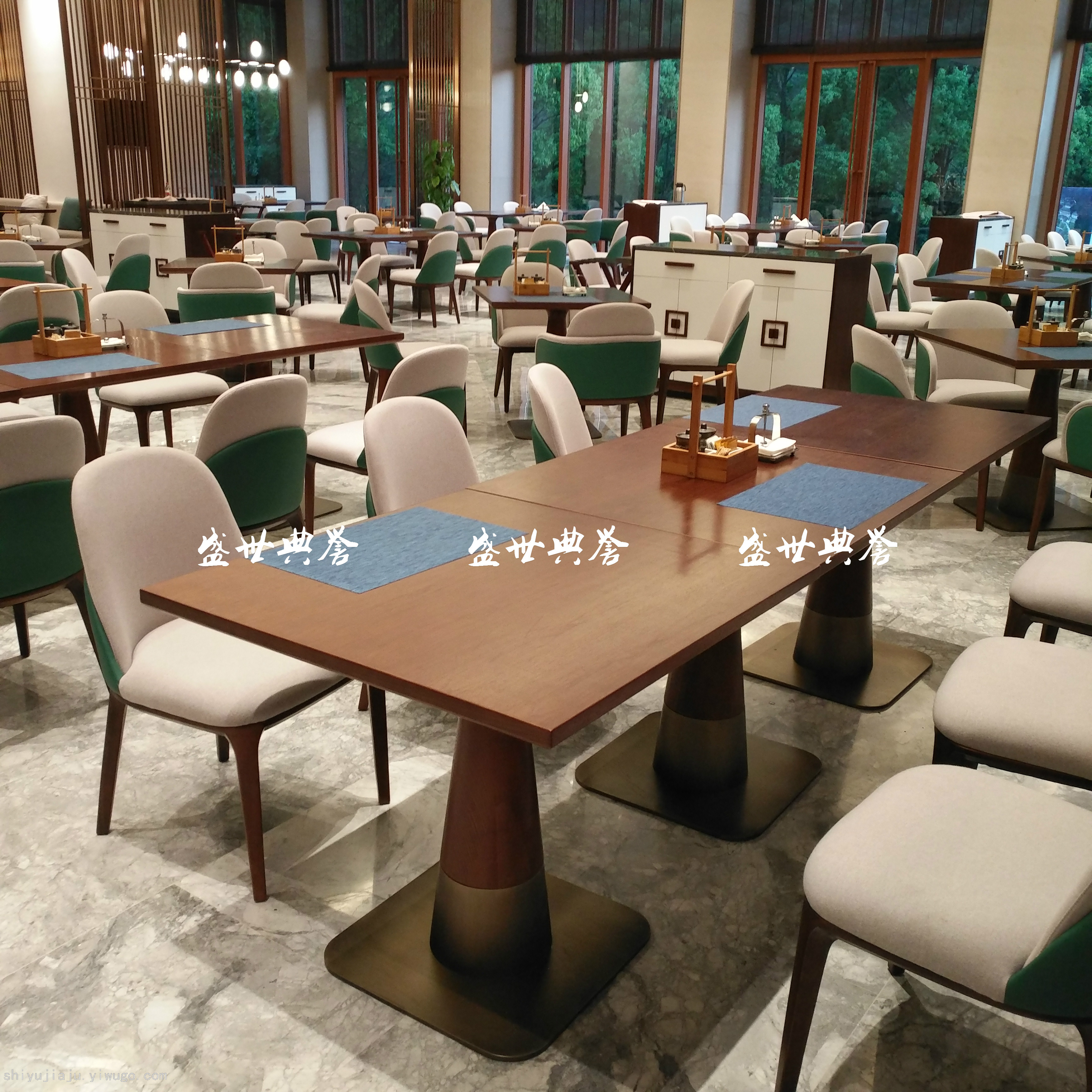 苏州度假酒店自助餐厅实木餐桌星级宾馆西餐桌椅商务酒店早餐桌椅