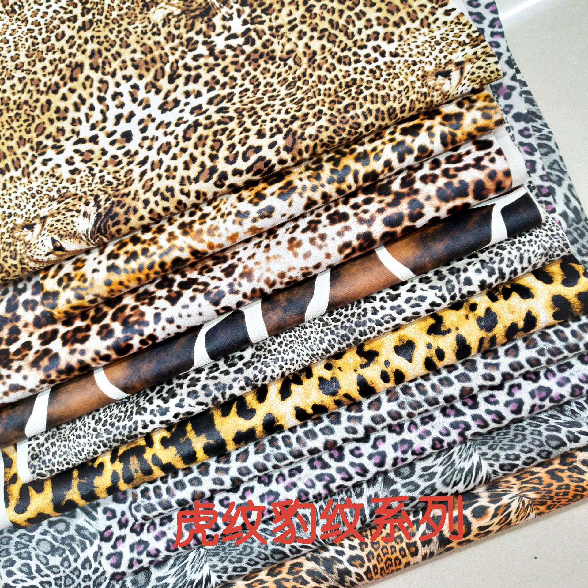 PU皮革印花人造革虎纹豹纹皮革面料箱包皮革工艺品家居装饰皮革
