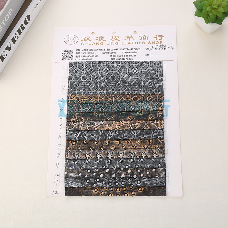双凌压花撞色皮革材料人造革压纹皮革软包装饰鞋材箱包材料