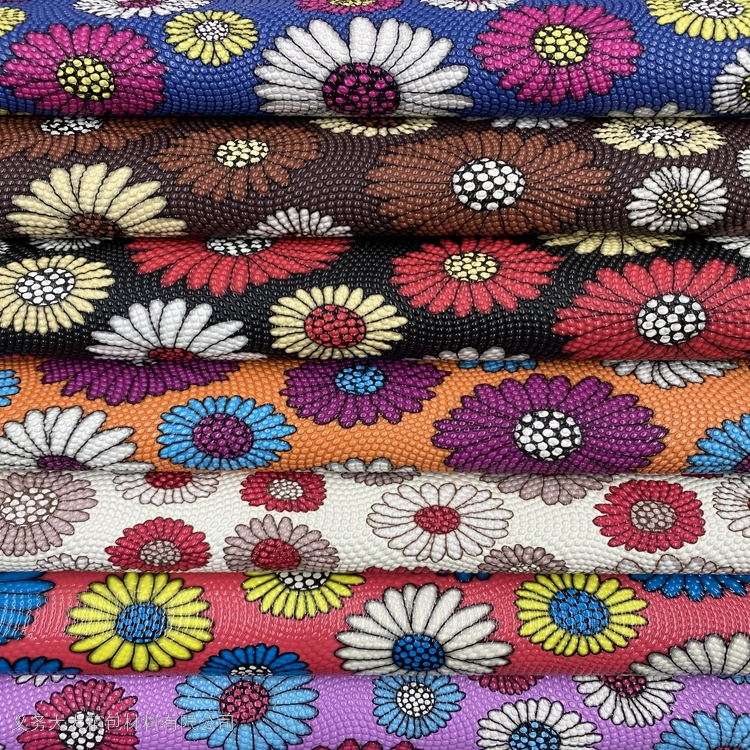 供应新款珍珠纹、水立方纹、篮球纹印花印菊花纹PVC人造箱包皮革