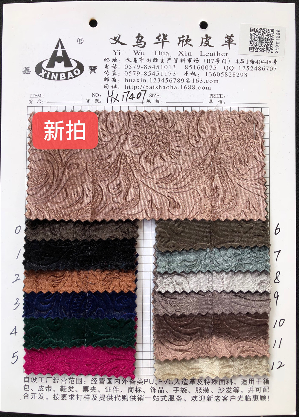 【华欣皮革】压花系列 HX17407 PU人造革 箱包鞋革