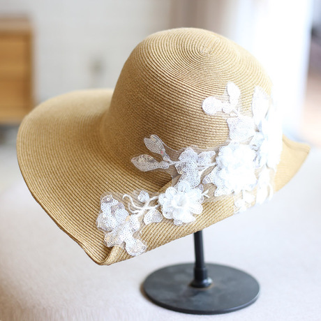 复古白色花翻边大沿草帽夏季细草凉帽时装遮阳帽子女夏天日系百搭
