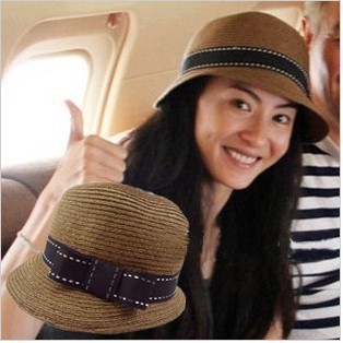 张柏芝同款草帽女 夏天韩版潮短檐沙滩遮阳帽太阳帽防晒帽子凉帽