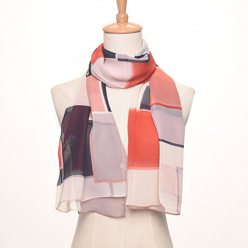 不规则格子撞色拼接丝巾夏季雪纺防晒披肩披纱巾