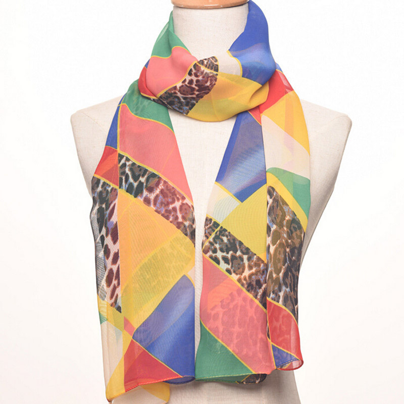 雪纺多彩拼色丝巾防晒披肩中长款沙滩巾夏季纱巾