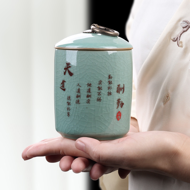 哥窑小茶叶罐茶罐陶瓷普洱装茶叶包装密封防潮储物便携迷你家用