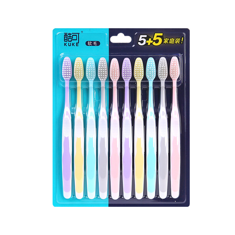 吸塑包装十支装家庭用马卡龙五色软毛牙刷全家适用可待客使用