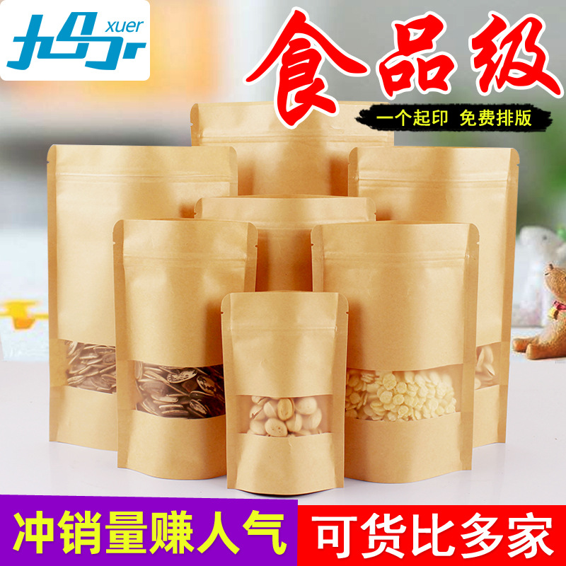 茶叶包装袋磨砂牛皮纸自立自封袋干果类密封袋开窗牛皮纸袋食品袋