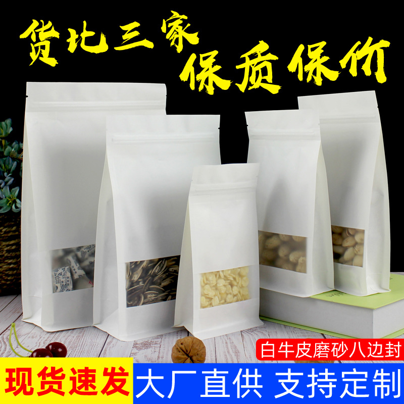 茶叶八边封袋食品开窗白色牛皮纸袋磨砂自立自封袋狗粮包装袋批发