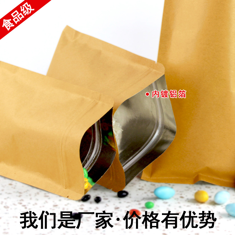 瓜子包装袋平底牛皮纸自封袋封口袋食品密封袋镀铝牛皮纸袋现货