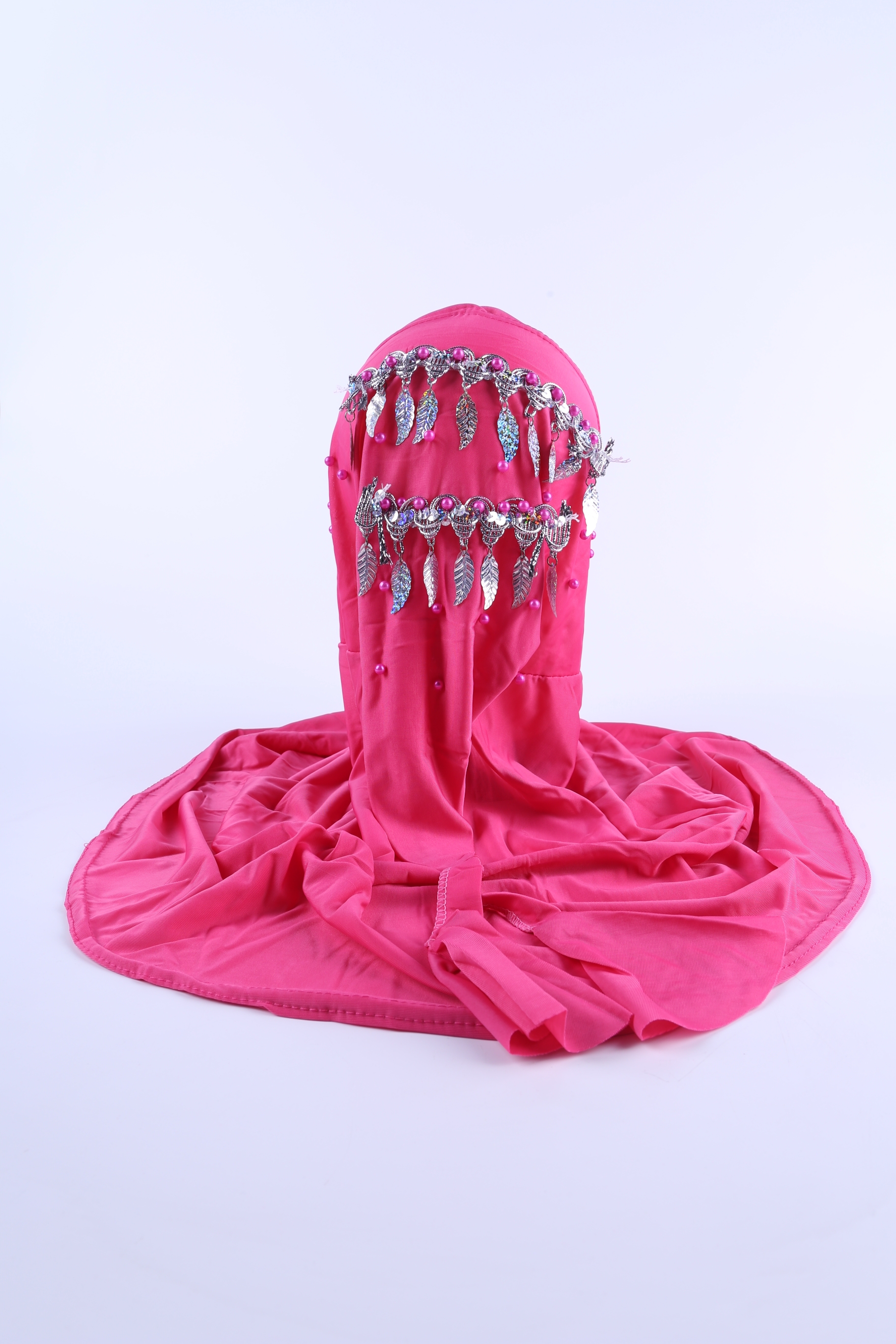 外贸热销厂家直销穆斯林盖头水晶麻长尾珍珠花片盖头围巾帽子