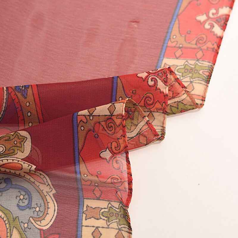 民族风女士花卉雪纺中长丝巾印花空调防晒披肩