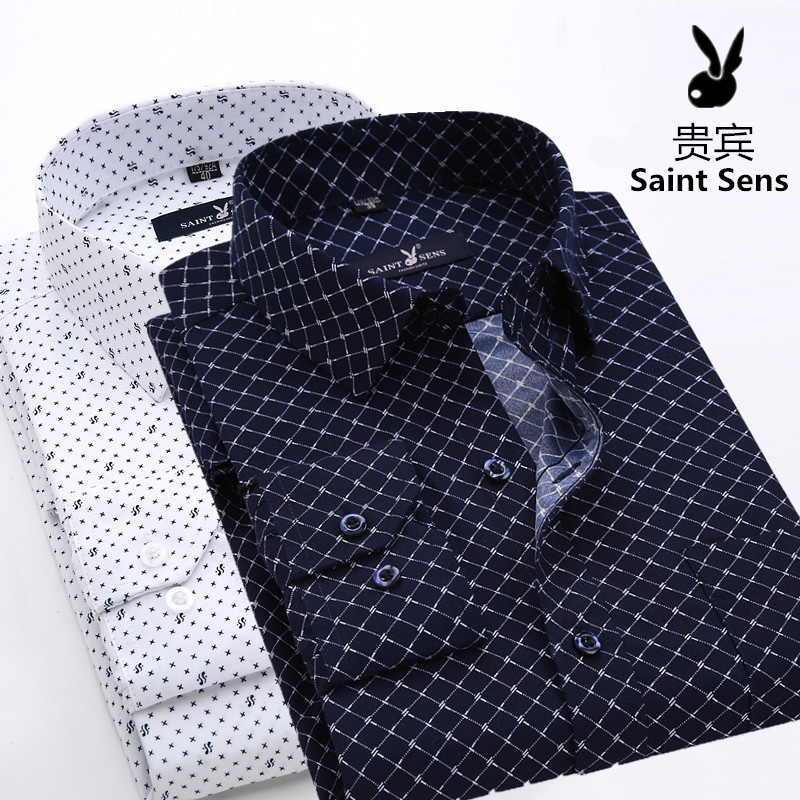 2021新款中年男士长袖衬衫商务休闲碎花条纹纯色衬衣免烫韩版修身
