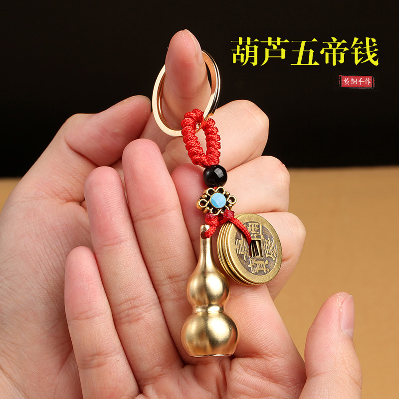 抖音爆款五帝钱钥匙扣纯铜葫芦挂件空心实心黄铜汽车挂饰福禄吊饰