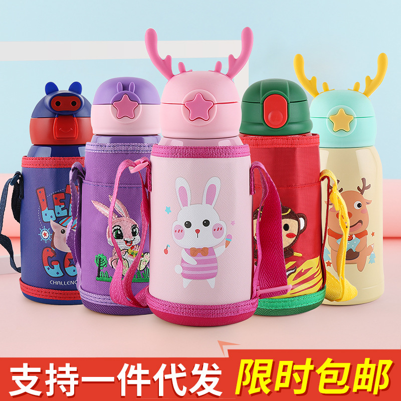 新款儿童保温杯带吸管 304不锈钢学生防摔盖两用便携卡通水壶水杯