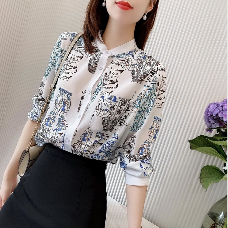 多款拼撞色复古港味印花衬衣早秋新款设计感小众法式衬衫女上衣潮