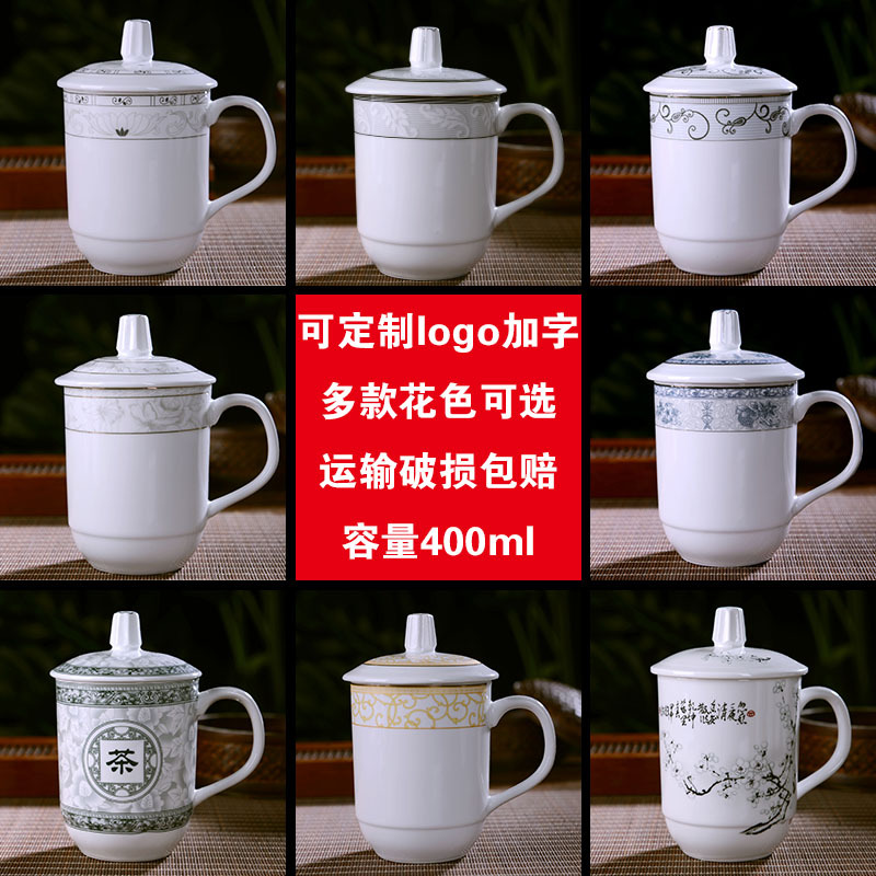 陶瓷杯子带盖茶杯水杯办公杯 景德镇瓷器定制 酒店会议室泡茶定制