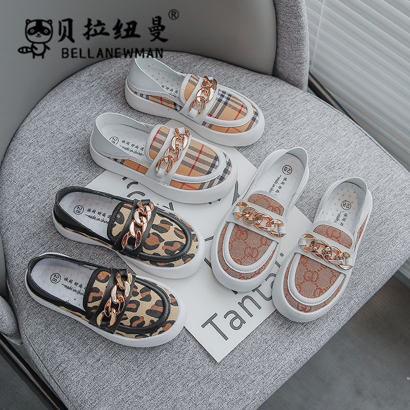 儿童休闲板鞋2021秋季新款男童懒人一脚蹬帆布鞋女童复古搭扣单鞋
