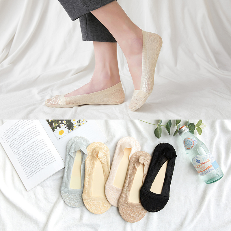 2020春夏季女士缎面蕾丝袜子 浅口硅胶防滑不掉跟船袜 防脱隐形袜