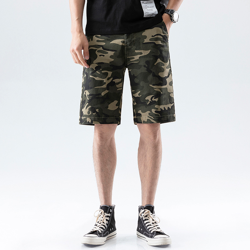 青年现货棉绿色微弹夏季休闲多口袋纯色普通沙滩裤