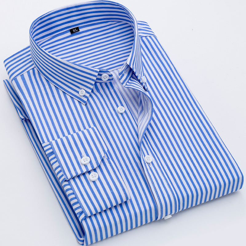 条纹衬衫男商务休闲男士长袖中青年牛津纺衬衣免烫上衣