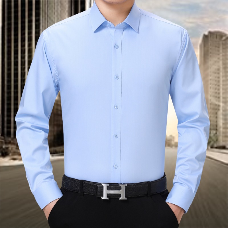 春秋新款男士长袖衬衫 翻领商务正装衬衣男式开衫免烫纯色衬衫男