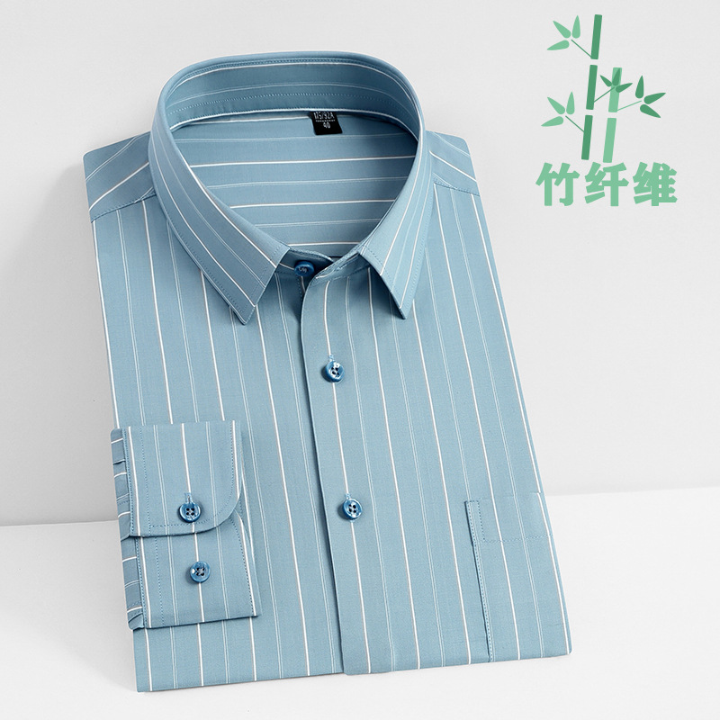 春季新款男士竹纤维弹力衬衫男式寸修身印花商务休闲抗皱免烫衬衣