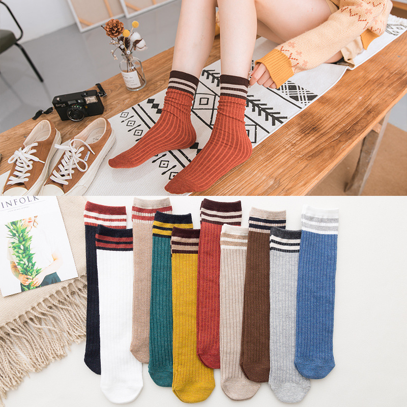 日系女士直板堆堆袜 棉袜子女 秋季新品二条杠中筒女袜厂家直销