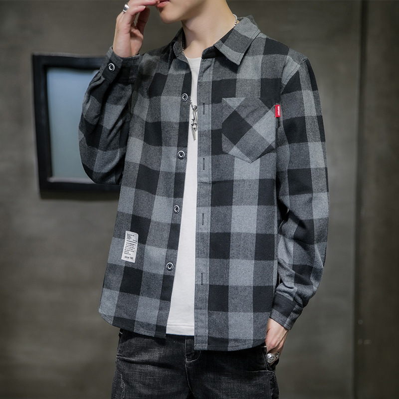 长袖衬衫男2021秋季新款韩版潮流ins帅气时尚休闲格子衬衣男外套