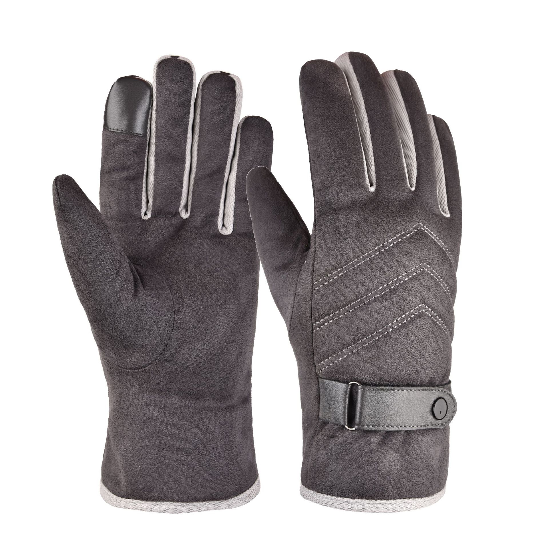 秋冬季麂皮绒保暖手套男士加绒加厚户外骑行防风触屏手套厂家直销