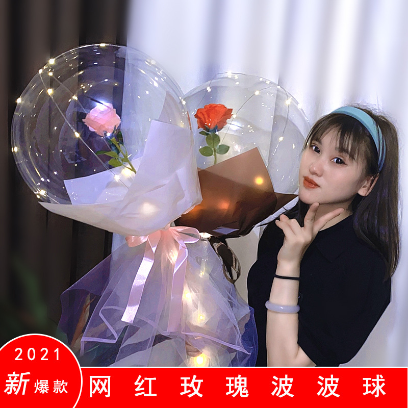 网红太空波波球花束情人节表白透明气球玫瑰花20寸发光波波球气球