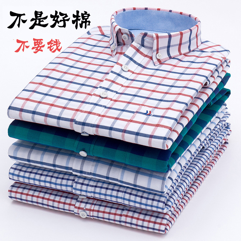 2021新纯棉衬衫男长袖衬衣休闲格子衬衫男酵素水洗牛津纺男式衬衫