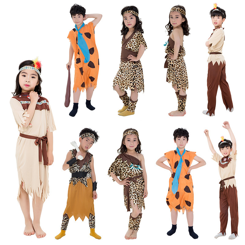 野人服装cosplay印第安人服装男女野人衣服儿童原始人豹纹装扮