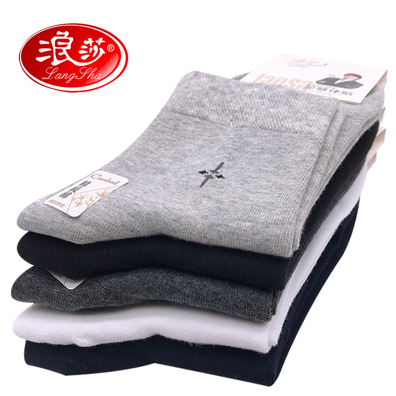 浪莎男士袜子春秋精梳棉吸汗四季长袜中筒男袜商务酒店棉袜批发