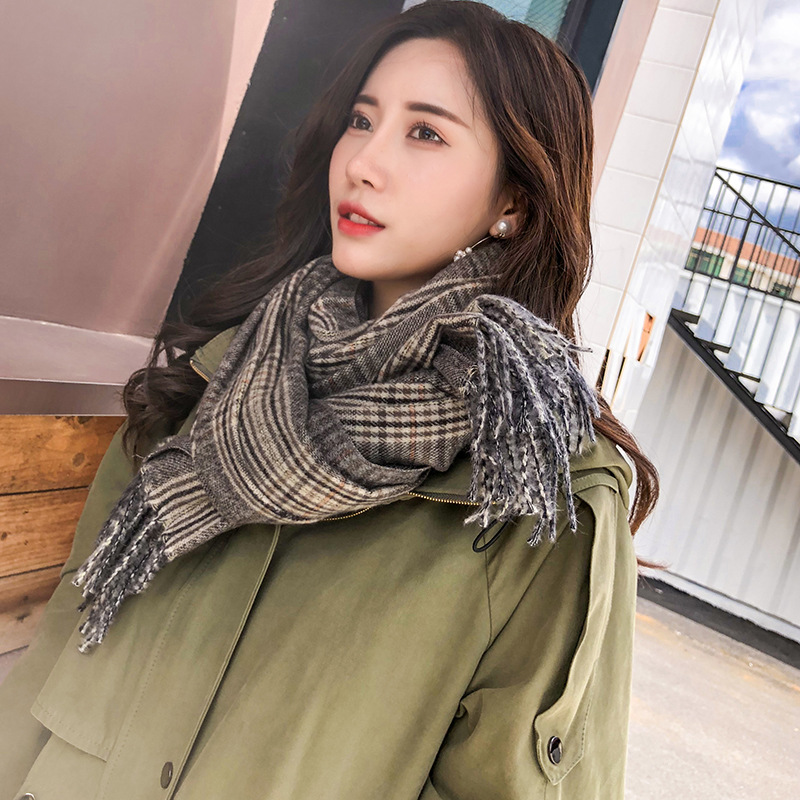 2020秋冬新款幂幂同款格子围巾英伦保暖加厚刺毛流苏百搭披肩围脖