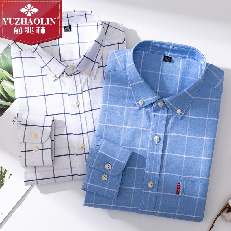 俞兆林男士条纹衬衫长袖全棉商务休闲职业工装衬衣可外穿批发