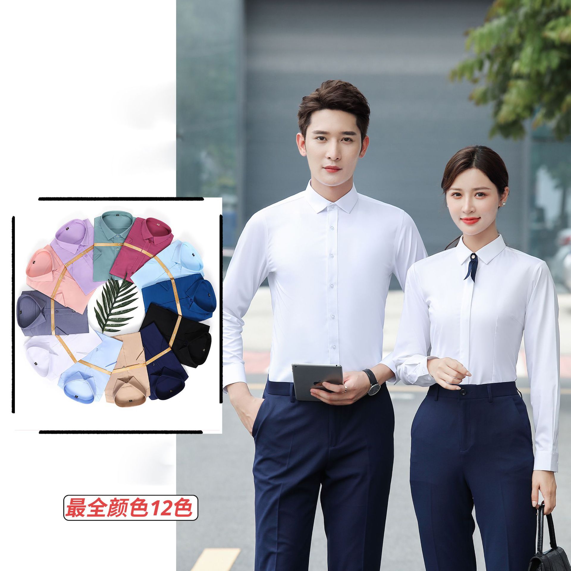竹纤维长袖免烫衬衫男女同款衬衣职业装12色可选企业团购商务正装