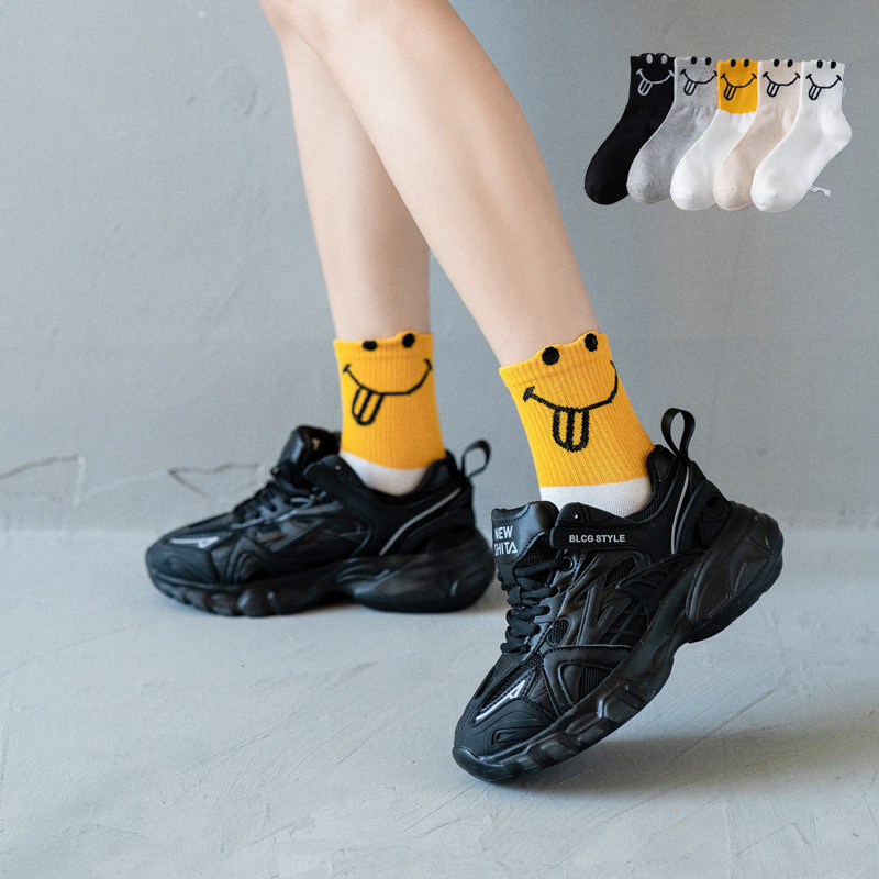 2020新款袜子女 卡通笑脸拼色中筒袜子 立体眼睛女袜厂家批发