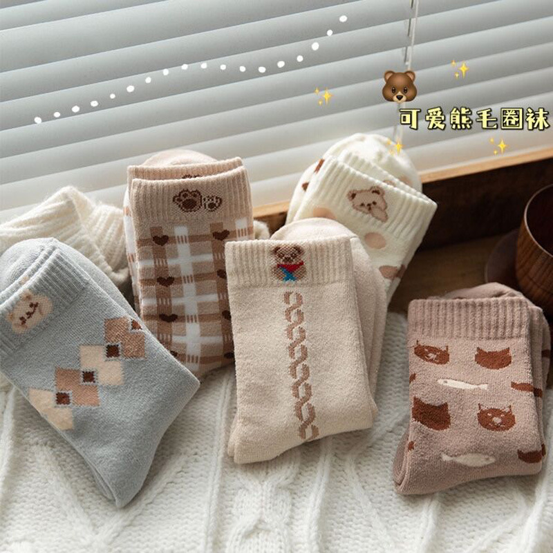 冬季保暖袜子女日系学院风中筒加厚可爱百搭韩版ins潮毛圈毛巾袜