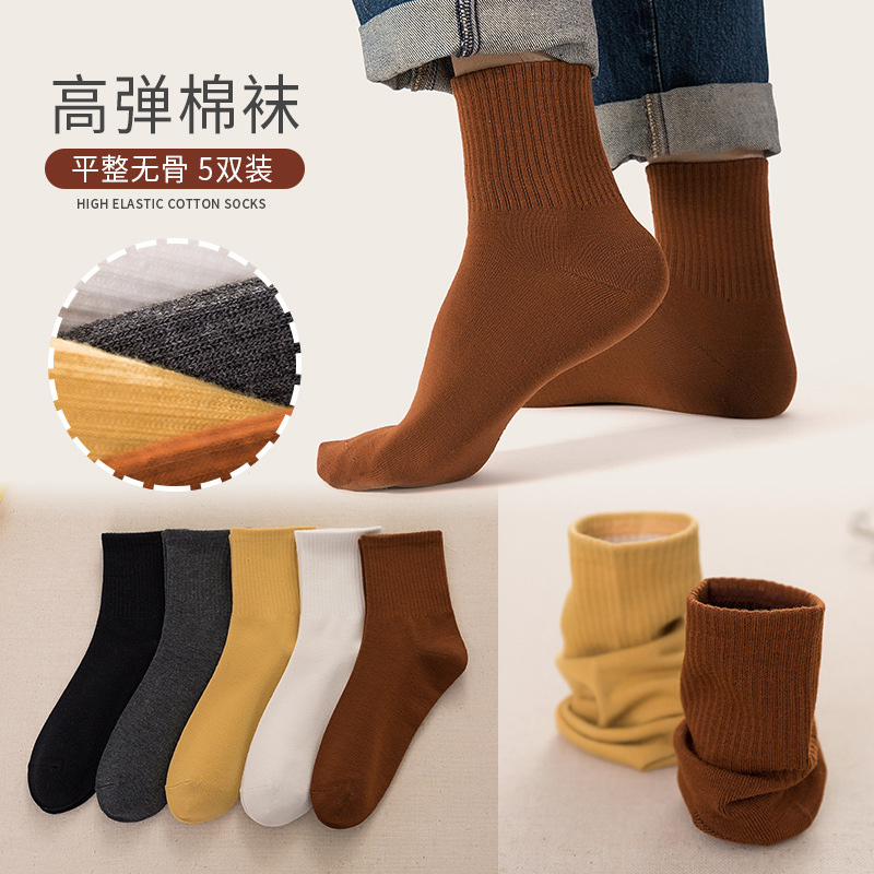 袜子女士新款秋冬季纯色棉袜高罗口复古中筒袜INS潮流长筒女袜