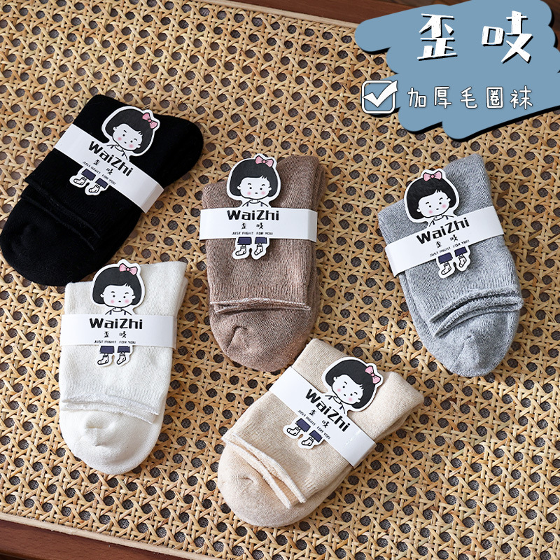 袜子女秋冬加厚卷边毛圈袜女纯色加绒毛巾袜日系居家地板袜月子袜