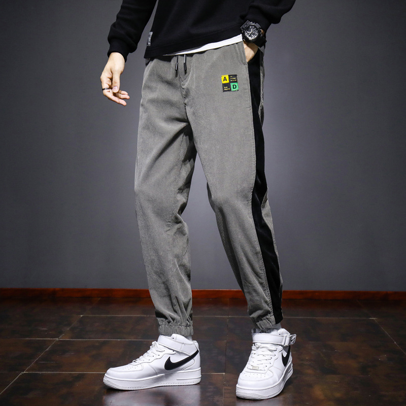 秋冬季男士灯芯绒休闲裤潮流微哈伦裤子男日系工装裤青年束脚九分