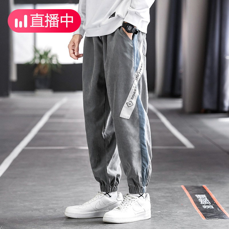 官方网店男士休闲长裤秋季宽松百搭九分运动裤子男束脚哈伦裤加绒