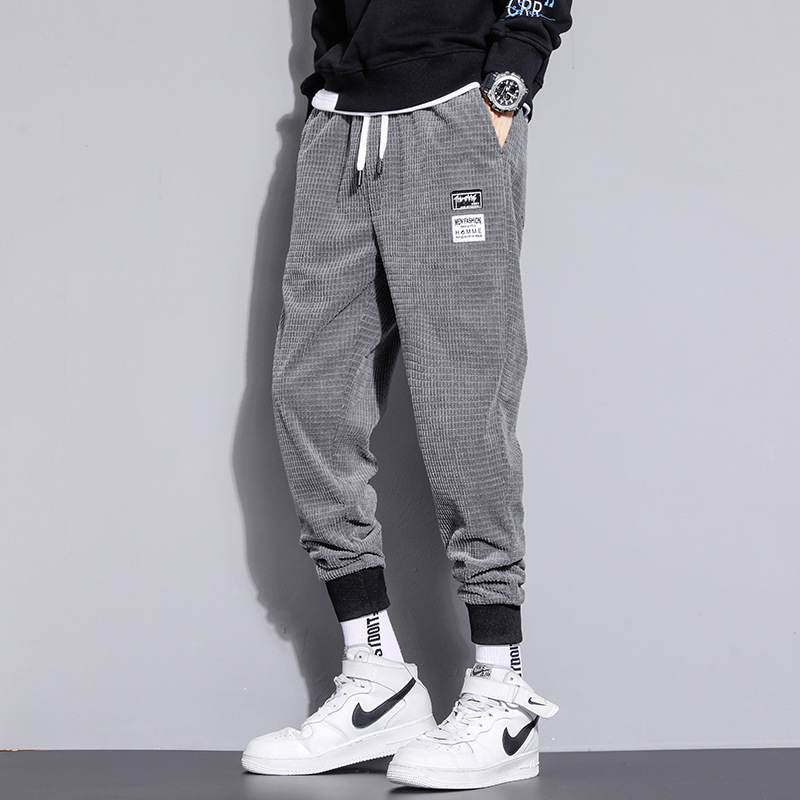 秋冬新款哈伦灯芯绒束脚潮牌学生九分韩版潮流时尚灯芯绒男休闲裤