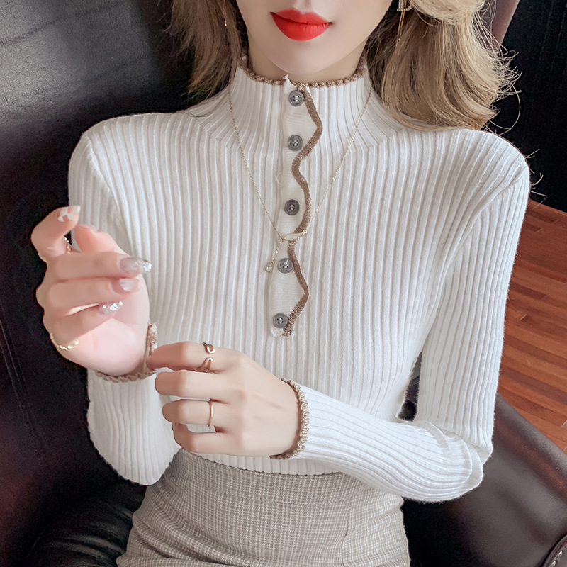 加厚半高领毛衣针织衫女2021秋冬新款个性半开领针织打底衫女套头