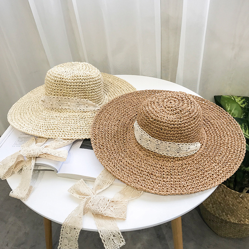 韩版帽子女夏天休闲百搭蝴蝶结草帽夏海边出游度假遮脸沙滩遮阳帽