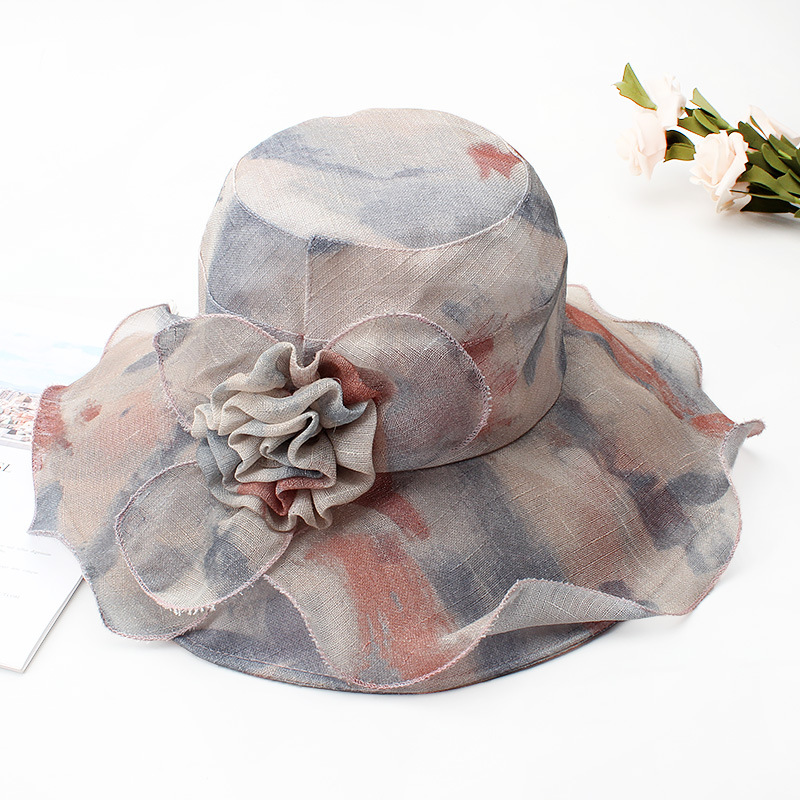 大檐遮阳帽女夏天防晒韩版迷彩可折叠棉麻户外登山中老年太阳帽子