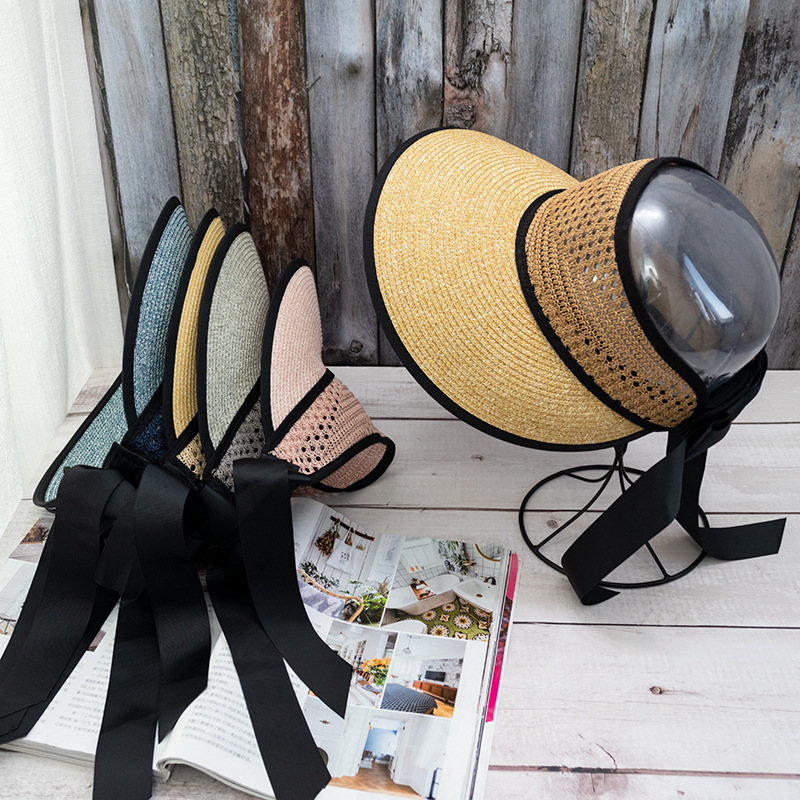 太阳帽女夏天韩版潮百搭空顶草帽大沿遮阳防晒大檐可折叠沙滩帽子